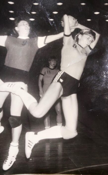 Poznali się: on dokładnych szczegółów nie pamięta. Mówi – wręczałem Tobie po meczu puchar. Byłaś najlepszą zawodniczką turnieju. Ona dopowiada – moje przejście do seniorek. Pani Jolanta była szczypiornistką, reprezentantką Polski, należała do elity juniorek, później młodzieżówki i w konsekwencji seniorek w piłce ręcznej. Grała w AZS – AWF Wrocław i z tym klubem odnosiła spektakularne sukcesy.