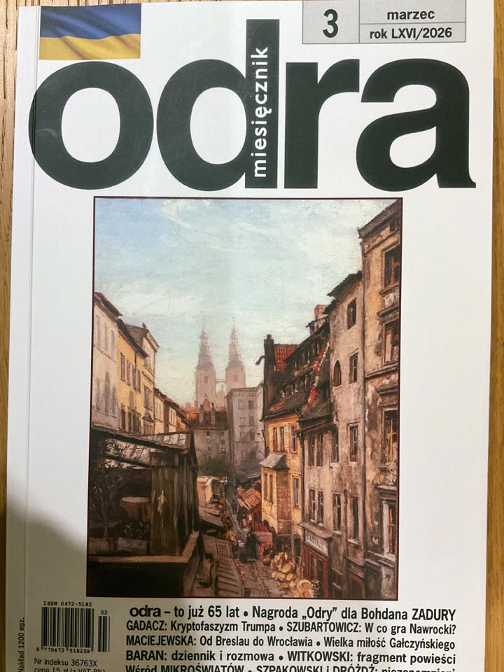 Rozpoczynałem studia polonistyczne, gdy zaczynały wychodzić pierwsze numery „Odry”. Mój krajan Heinz Kneip, profesor slawistyki w Regensburgu/Ratyzbonie, zarazem wielki przyjaciel Tadeusza Różewicza, zachęcał mnie do kupowania nowego miesięcznika. Szefostwo „Odry” odrzuciło jednak wspólny tekst Zdzicha i mój o żegludze zatytułowany „Odrą od Kanału Gliwickiego do Szczecina i Berlina”. Szkoda, bo nasze przewidywania o niszczeniu żeglugi na rzece Odrze sprawdziły się w stu procentach. Znakomicie natomiast, że nasz miesięcznik kulturalno-społeczny przeżył w zdrowiu 65 lat. Niech dociągnie przynajmniej do setki, czego reaktywowane „Słowo Polskie” mu życzy. Zwłaszcza redaktorom „Odry” głębokie ślemy ukłony.