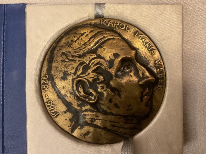 Drugi mój medal z brązu uwiecznia sylwetę wielkiego kompozytora i dyrygenta Carla Marii Webera. W tym roku mija właśnie 200 lat od jego śmierci. W Niemczech i Polsce oraz kilku krajach na trzech kontynentach już trwają imprezy weberowskie. Medal powyższy odlany został w Opolu z okazji 180 rocznicy pobytu kompozytora we wsi Carlsruhe (obecnie Pokój) na Opolszczyźnie.