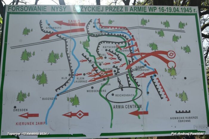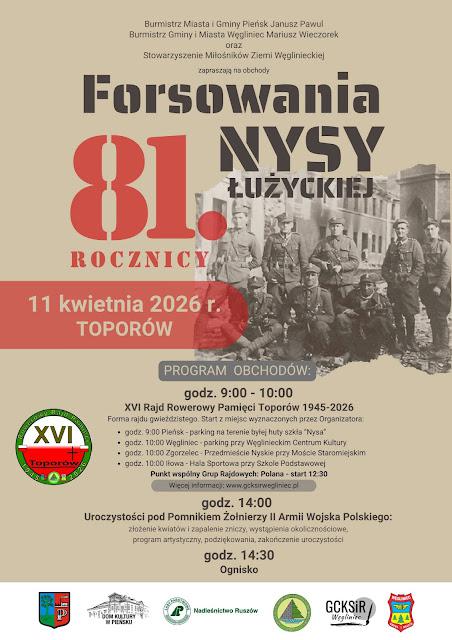 Pięć dni wcześniej, bo już w sobotę 11 kwietnia 2026 roku o godz. 14:00 w miejscu pamięci narodowej, znajdującym się w dawnej, dziś nieistniejącej wsi Toporów/Prędocice (niem. Tormersdorf) położonej nad rzeką Nysa Łużycka w gminie Pieńsk, powiat Zgorzelec, również zostanie upamiętniona 81. rocznica forsowania Nysy Łużyckiej przez żołnierzy 2 AWP, dowodzonej przez generała dywizji Karola Świerczewskiego. Program uroczystości poniżej na afiszu.