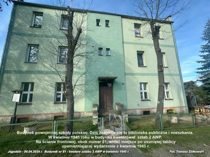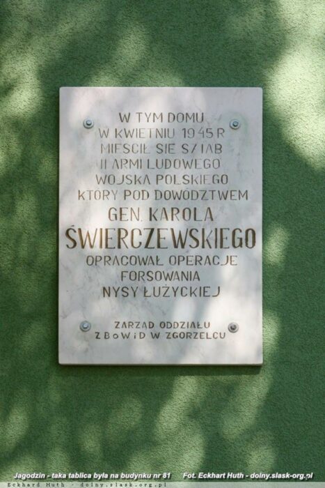 14 kwietnia 1945 roku, po południu w jagodzińskiej gospodzie odbyła się odprawa, na której gen. Karol Świerczewski, dowódca 2 AWP omawiał z oficerami zadania dla poszczególnych dywizji przy forsowaniu rzeki Nysa Łużycka.